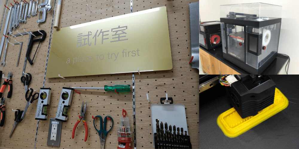 【1階】3Dプリンターやレーザーカッター、工具類を備える試作室!
