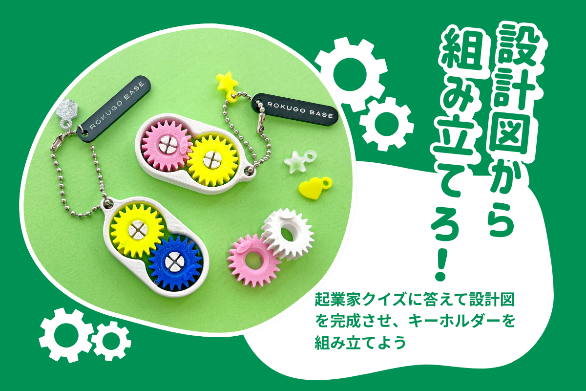 起業家クイズに答えて設計図を完成させ、キーホルダーを組み立てよう