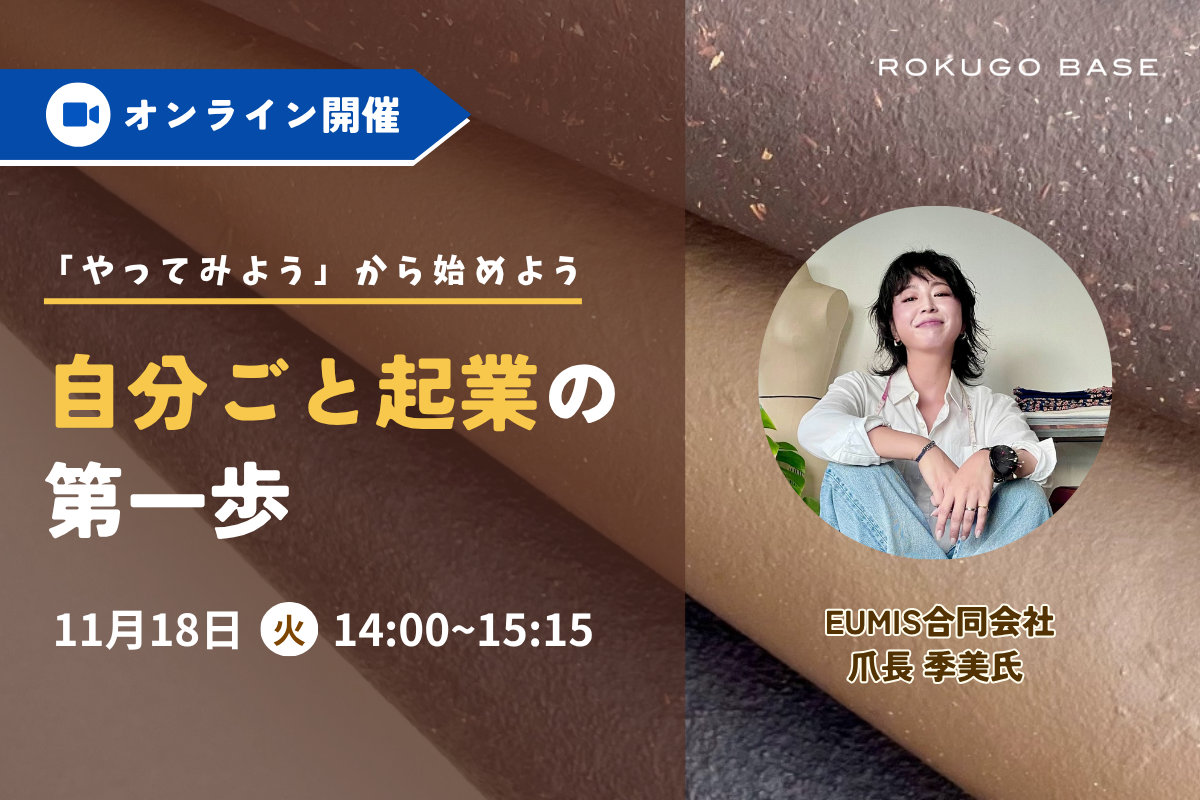 今回のセミナーでは、植物由来かつ堆肥可能な新素材「EUMIS skin」の開発に取り組むEUMIS合同会社 代表 爪長 季美氏に“自分ごと”から始める起業についてお話しいただきます。