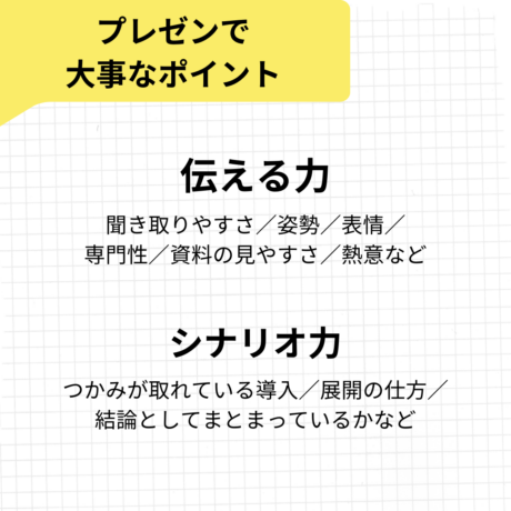 プレゼンテーションの評価ポイントはこの2つです。