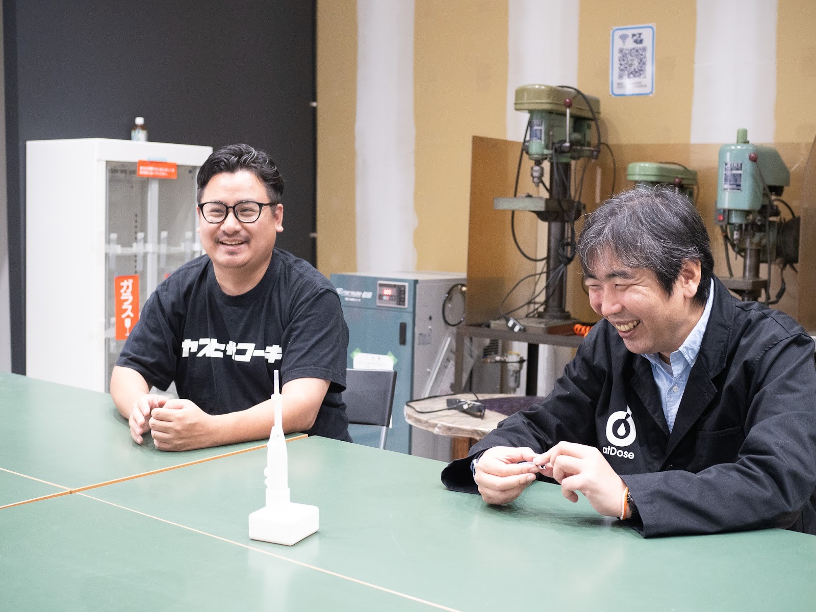 今回お話を伺ったのは、アットドウス株式会社の中村 秀剛さん。金型業界やIT業界、監査法人、企業支援などの経歴を持つ中村さんが取り組んでいるのは、新たな投薬装置「atDose Core(アットドウス・コア)」の開発です。2025年の春に六郷BASEを卒業し、一緒にものづくりをしていた有限会社安久工機が運営する「ヤスラボ(ヤスヒサコーキイノベーションラボラトリ)」に入居。今回は、安久工機の代表である田中宙さんにも一緒にお話を伺いました。