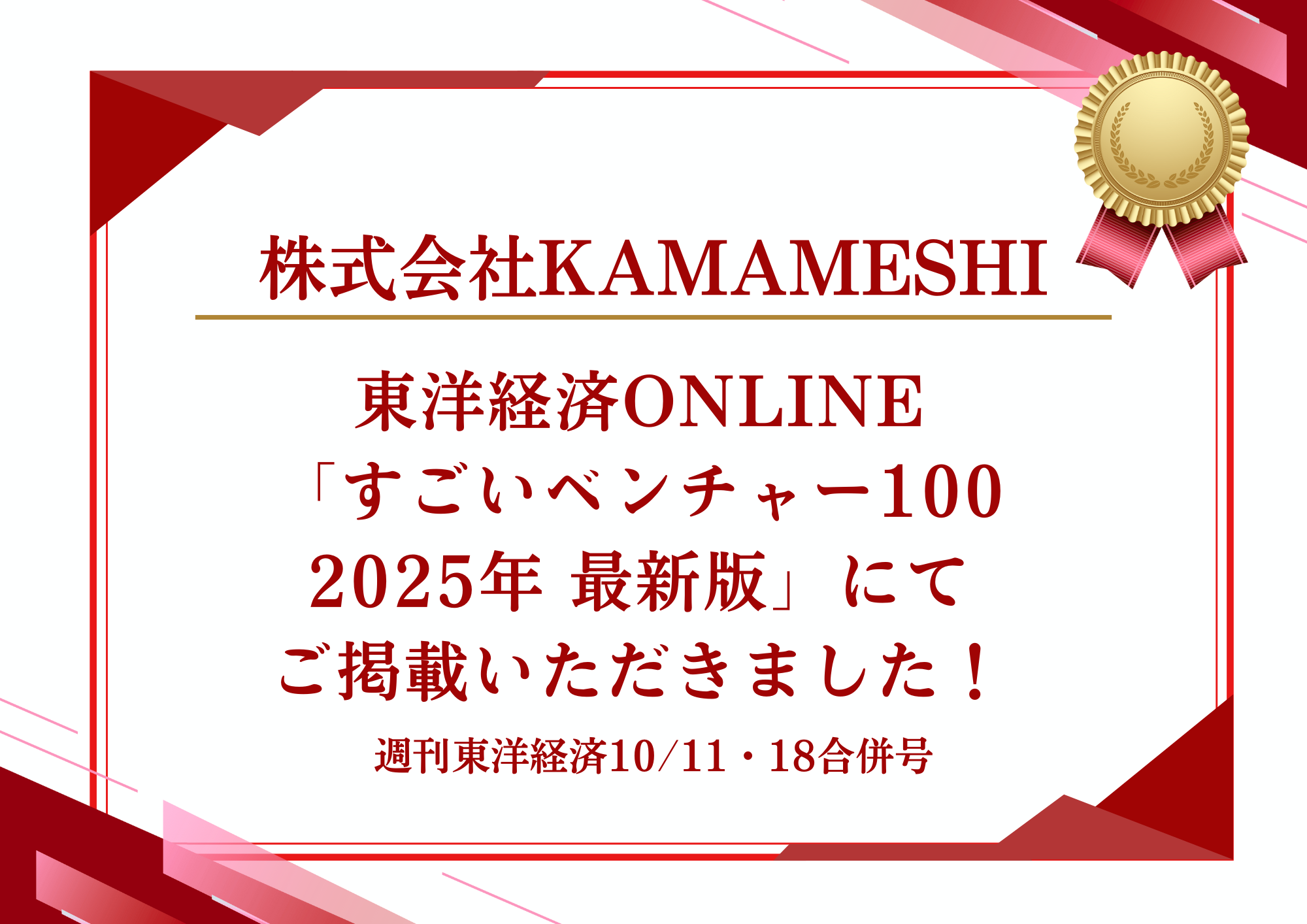 株式会社KAMAMESHIが東洋経済「すごいベンチャー100」2025年最新版に選出されました!