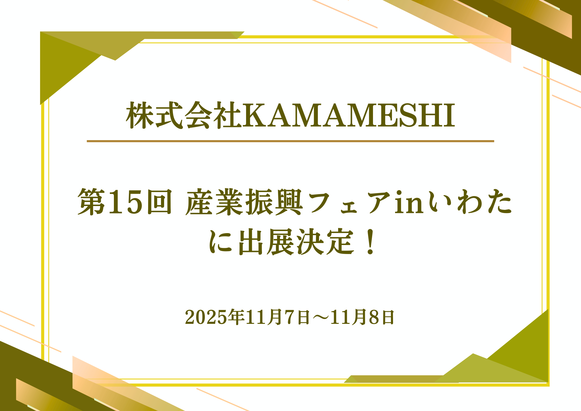 株式会社KAMAMESHIが第15回 産業振興フェアinいわたに出展決定!