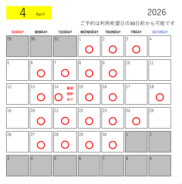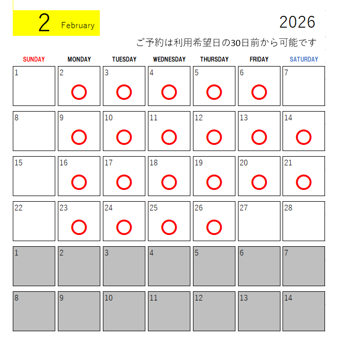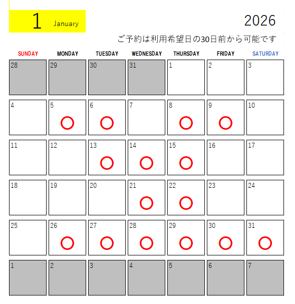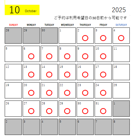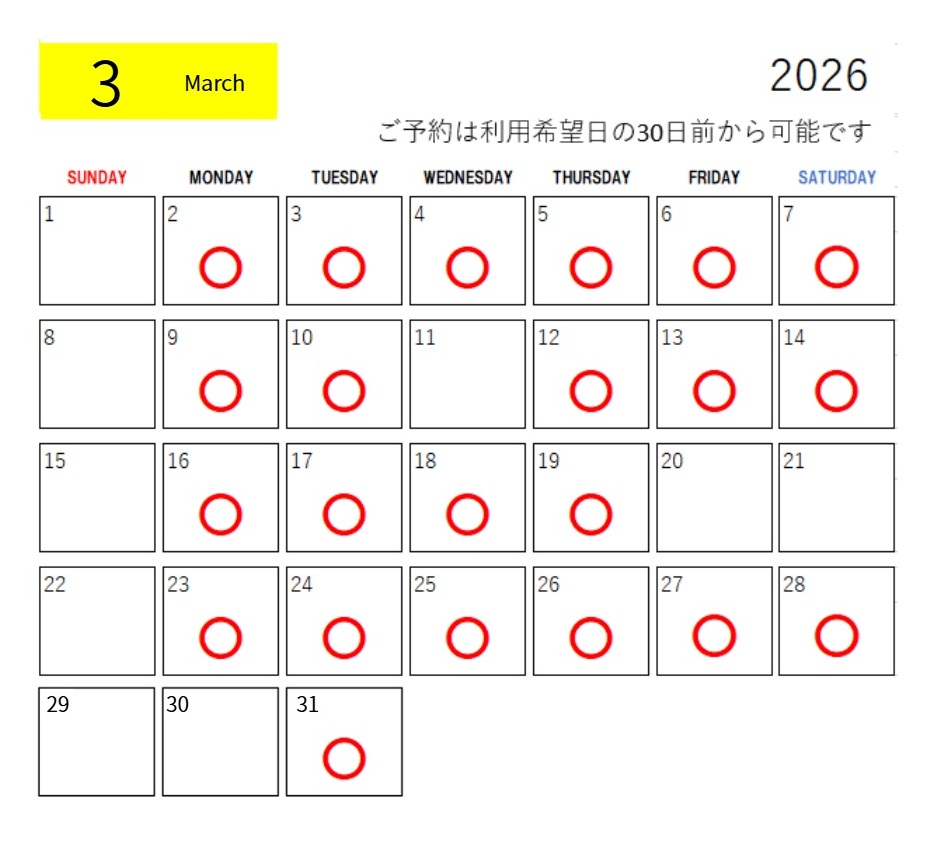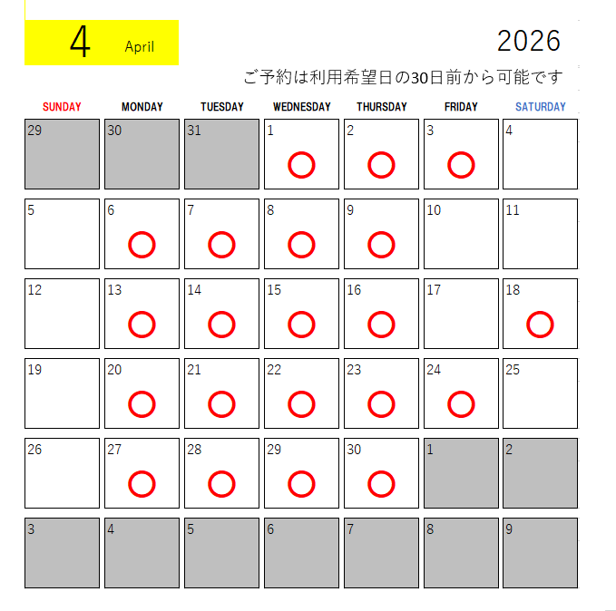 ご予約は利用日の30日前から可能です。